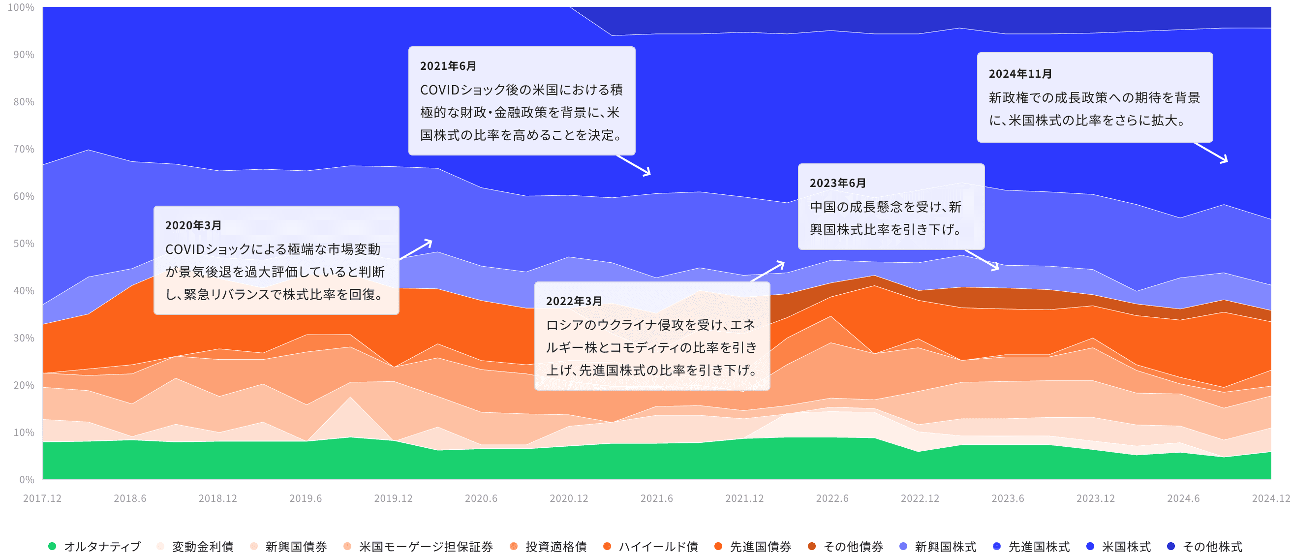 海外で提供している標準型モデルのリスクにて実施してきた投資行動の事例