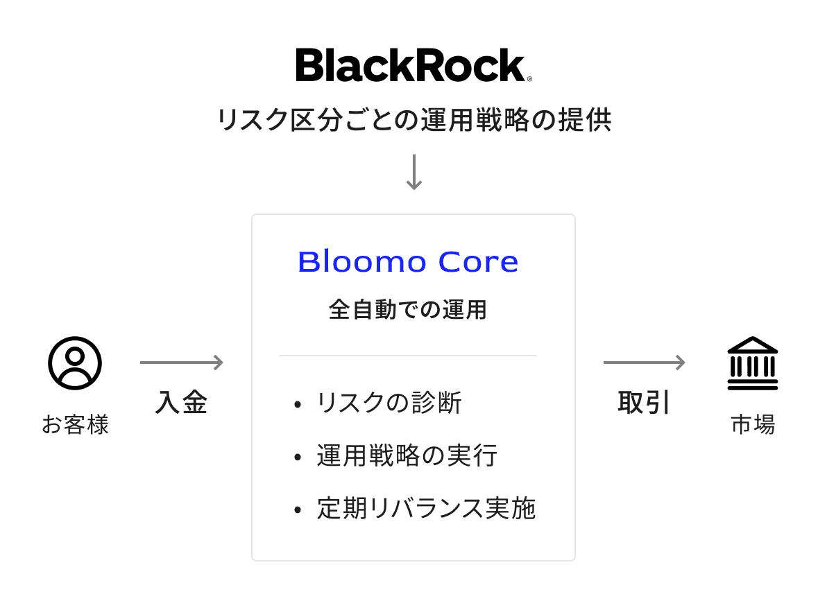 ※ブラックロックの助言の下で、顧客資産を運用する一任サービスをブルーモが提供
