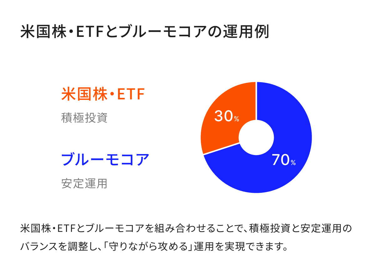 ブルーモコアは、お客様に必要なリスク水準に合わせて、世界最大の運用会社ブラックロックの機動的な投資戦略を実行する、世界基準の資産運用サービスです。