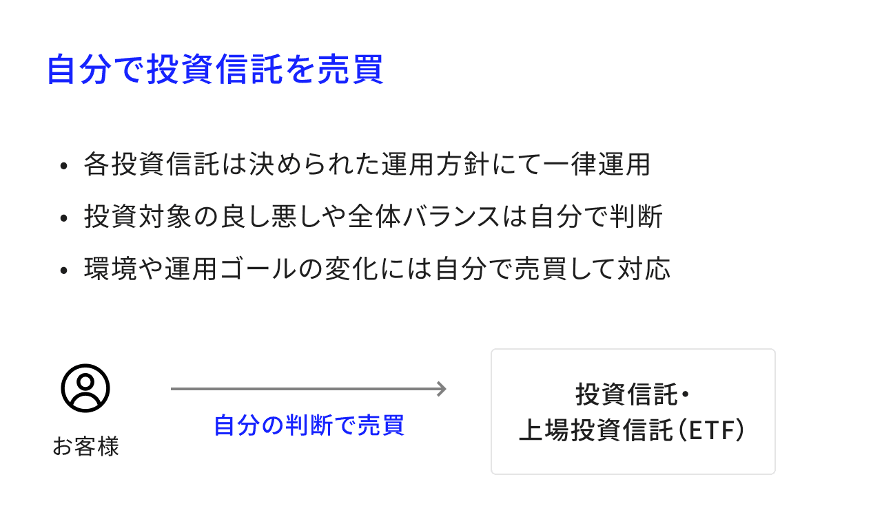 投資信託との最大の違いは、ブルーモコアがあなたの専属担当者として常に運用を最適化する点です。