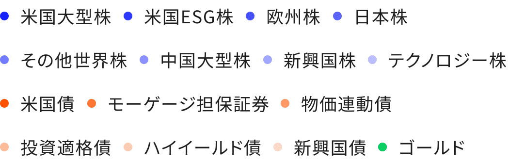 リスク特性や運用コスト等を考慮して投資対象ETFを選定。ポートフォリオを構成するETFの平均経費率は約0.15%-0.20%(年率)※